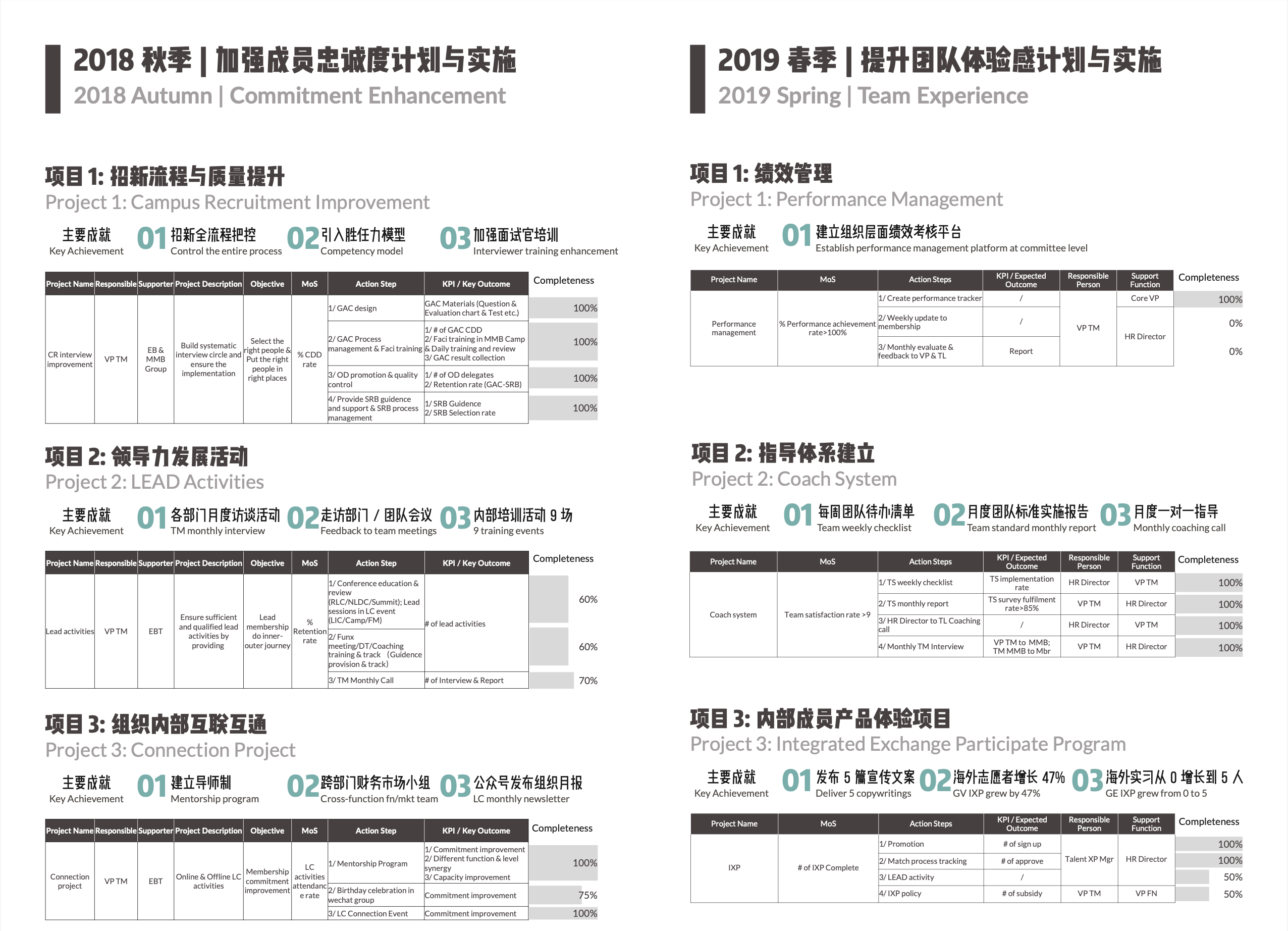 - 组织管理:完善并标准化团队招新与晋升流程;完善组织及各部门培训计划,负责举办10+场大型内部培训及活动,年度团队绩效提⾼11%;加强成员对组织的归属感与认同感,年度留任率提⾼8%;负责组织内部公众号运营,累计发表⽂章75篇
